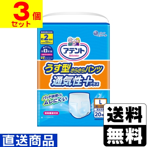 ■直送■[大王製紙]アテント うす型さらさらパンツ 通気性プラス 2回吸収 Lサイズ 20枚入【1ケース(3個入)】同梱不可キャンセル不可[送料無料]