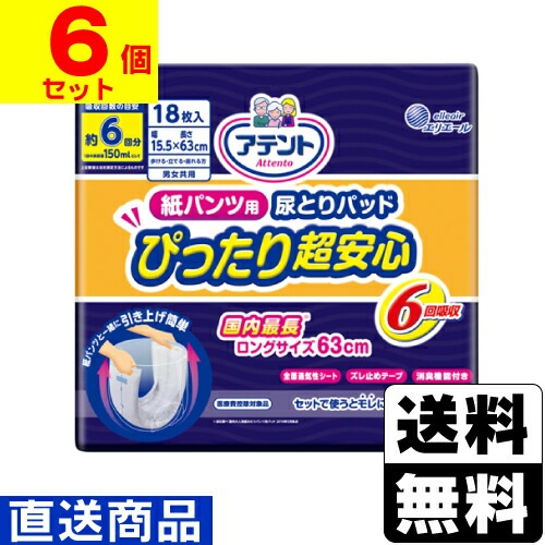 ■直送■[大王製紙]アテント 紙パンツ用 尿とりパッド ぴったり超安心 6回吸収 18枚入【1ケース(6個入)】同梱不可キャンセル不可[送料無料]