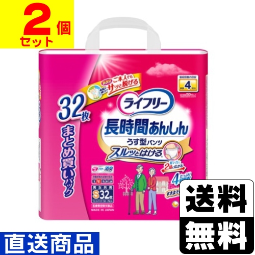 ■直送■[ユニチャーム]ライフリー 長時間あんしんうす型パンツ Sサイズ 32枚入【1ケース(2個入)】同梱不可キャンセル不可[送料無料]