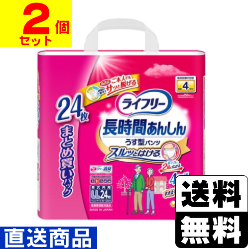 ■直送■[ユニチャーム]ライフリー 長時間あんしんうす型パンツ LLサイズ 24枚入【1ケース(2個入)】同梱不可キャンセル不可[送料無料]