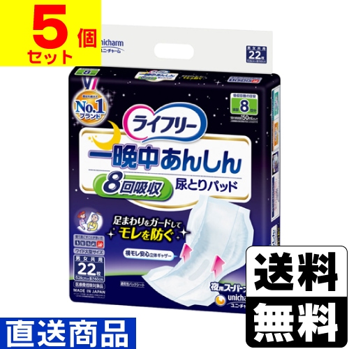 ■直送■[ユニチャーム]ライフリー 一晩中あんしん 尿とりパッド 夜用スーパープラス 8回吸収 22枚入【1ケース(5個入)】同梱不可キャンセル不可[送料無料]