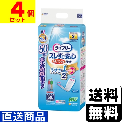 ■直送■[ユニチャーム]ライフリー ズレずに安心 紙パンツ専用尿とりパッド うすさ1/2 (50枚入)【1ケース(4個入)】同梱不可キャンセル不可[送料無料]