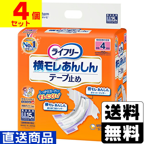 ■直送■[ユニチャーム]ライフリー 横モレあんしんテープ止め LLサイズ 15枚入【1ケース(4個入)】同梱不可キャンセル不可[送料無料]