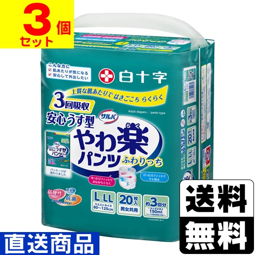 ■直送■[白十字]サルバ Dパンツ やわらかスリム うす型スーパー L-LLサイズ 男女共用 20枚入【1ケース(3個入)】同梱不可キャンセル不可
