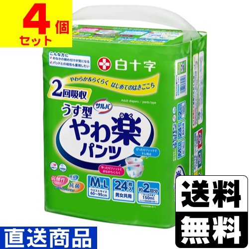 ■直送■[白十字]サルバ やわ楽パンツ M-Lサイズ 24枚入【1ケース(4個入)】同梱不可キャンセル不可
