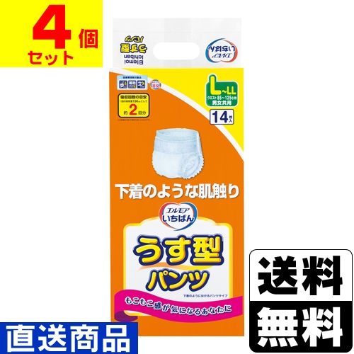 ■直送■エルモアいちばん うす型パンツ L-LLサイズ 14枚入【1ケース(4個入)】同梱不可キャンセル不可[送料無料]