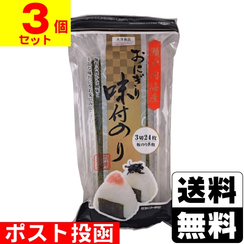 ■ポスト投函■瀬戸内海産 おにぎり味付のり 3切24枚入 (板のり8枚入)【3個セット】