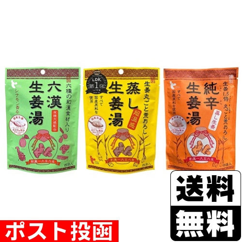 ■ポスト投函■[イトク食品]六漢生姜湯 16g×5袋入+蒸し生姜湯 16g×5袋入+純辛蒸し生姜湯 14g×4袋入
