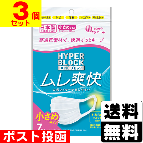 ■ポスト投函■[大王製紙]ハイパーブロックマスク ムレ爽快 小さめサイズ 7枚入【3個セット】