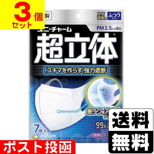 ■ポスト投函■[ユニチャーム]超立体マスク ふつう 7枚入【3個セット】