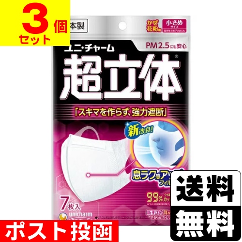 ■ポスト投函■[ユニチャーム]超立体マスク 小さめ 7枚入【3個セット】