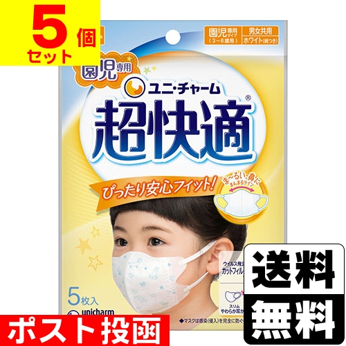 ■ポスト投函■[ユニチャーム]超快適マスク 園児専用タイプ 5枚入【5個セット】【おひとり様1セットまで】
