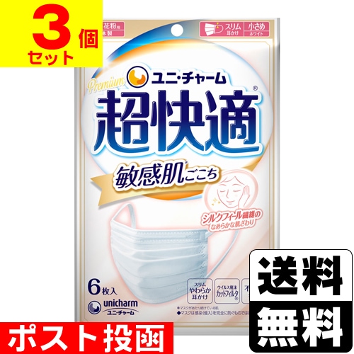 ■ポスト投函■[ユニチャーム]超快適マスク 敏感肌ごこち 小さめ 6枚入【3個セット】