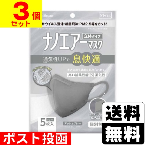 ■ポスト投函■[アイリスオーヤマ]ナノエアーマスク ふつうサイズ 5枚入 アッシュグレー (RK-N5MAG)【3個セット】