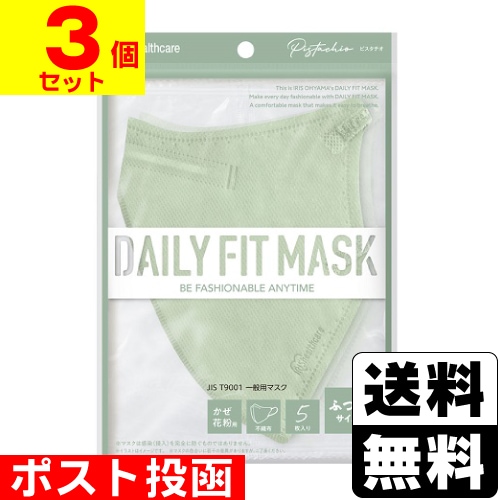 ■ポスト投函■[アイリスオーヤマ]DAILY FIT MASK(デイリーフィットマスク) 立体マスク ふつうサイズ ピスタチオ 5枚入【3個セット】