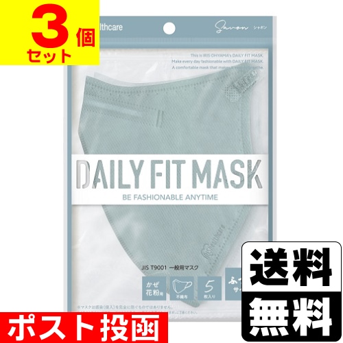 ■ポスト投函■[アイリスオーヤマ]DAILY FIT MASK(デイリーフィットマスク) 立体マスク ふつうサイズ シャボン 5枚入【3個セット】