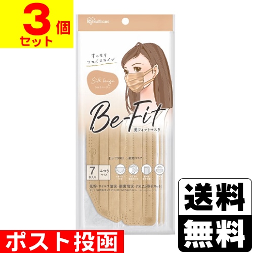 ■ポスト投函■[アイリスオーヤマ]美フィットマスク ふつうサイズ シルクベージュ 7枚入【3個セット】