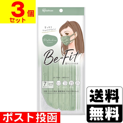 ■ポスト投函■[アイリスオーヤマ]美フィットマスク ふつうサイズ ピスタチオ 7枚入【3個セット】
