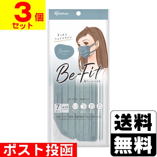 ■ポスト投函■[アイリスオーヤマ]美フィットマスク ふつうサイズ シャボン 7枚入【3個セット】