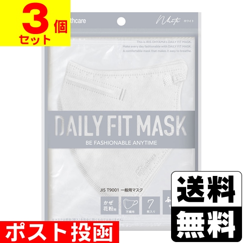 ■ポスト投函■[アイリスオーヤマ]ディリーフイットマスク 立体マスク ふつうサイズ ホワイト 7枚入【3個セット】