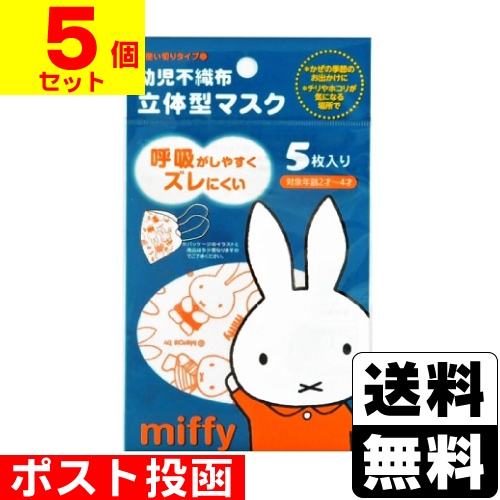■ポスト投函■幼児用 ミッフィー 不織布立体型マスク ミッフィー 5枚入【5個セット】