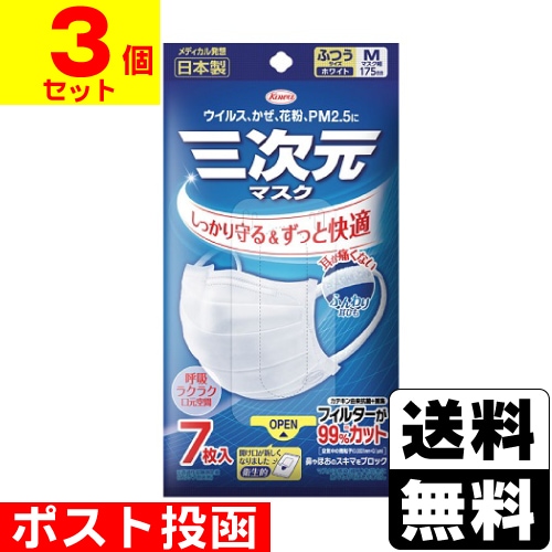 ■ポスト投函■[興和]三次元マスク ホワイト ふつうMサイズ 7枚入【3個セット】