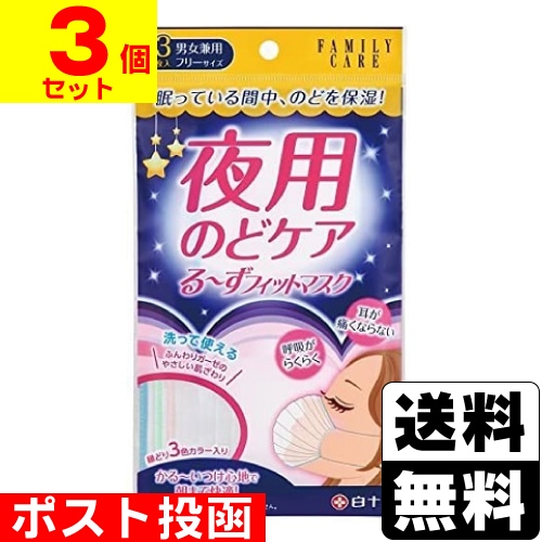 ■ポスト投函■[白十字]ファミリーケア るーずフィットマスク 男女兼用 フリーサイズ 3枚入 【3個セット】