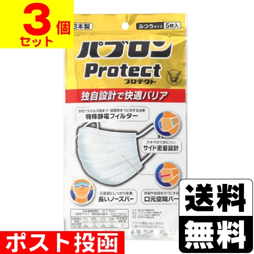■ポスト投函■[大正製薬]パブロン Protectマスク ふつうサイズ 5枚入【3個セット】