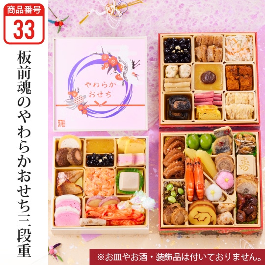 【商品番号33】板前魂 和洋風三段重 板前魂のやわらかおせち三段重 同梱不可[送料無料]