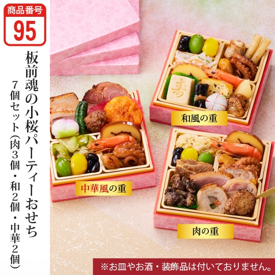 【商品番号95】板前魂 和洋中華風ミニ一段重 板前魂の小桜パーティーおせち7個セット(肉:3個、和:2個、中華:2個) 同梱不可[送料無料]