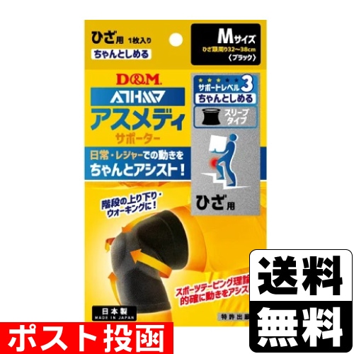 ■ポスト投函■アスメディサポーター サポートレベル3 ちゃんとしめるスリーブタイプ ひざ用 Mサイズ 1枚入