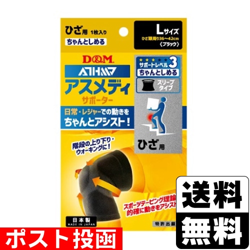 ■ポスト投函■アスメディサポーター サポートレベル3 ちゃんとしめるスリーブタイプ ひざ用 Lサイズ 1枚入
