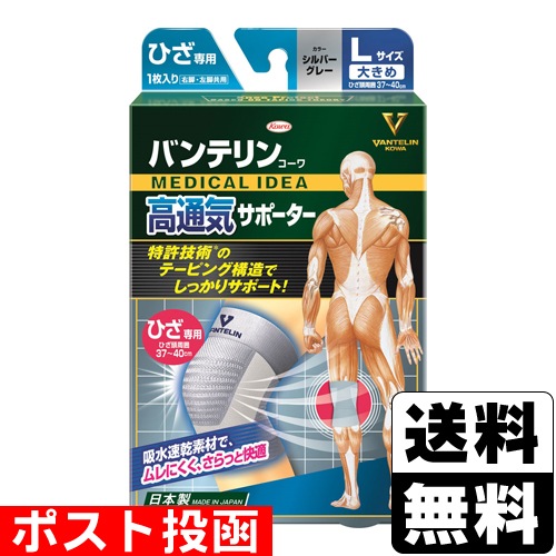 ■ポスト投函■[興和]バンテリンコーワサポーター 高通気サポーター ひざ専用 シルバーグレー Lサイズ 1枚入