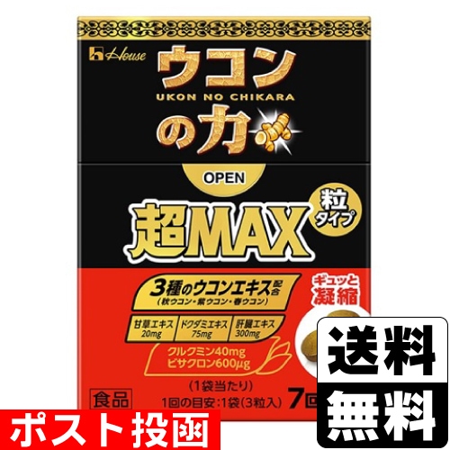 ■ポスト投函■[ハウスウェルネスフーズ]ウコンの力 超MAX 粒タイプ箱 7回分(3粒×7袋入)