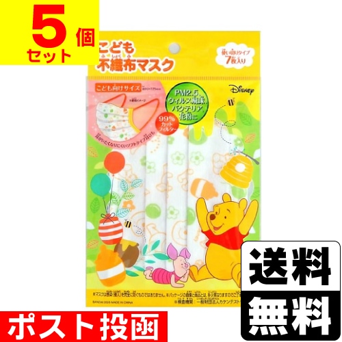 ■ポスト投函■こども用 不織布プリーツマスク くまのプーさん 7枚入【5個セット】