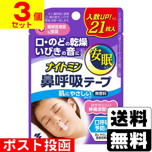 ■ポスト投函■[小林製薬]ナイトミン 鼻呼吸テープ 無香料 21枚入【3個セット】