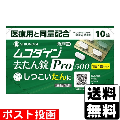 【第2類医薬品】【セ税】■ポスト投函■[シオノギヘルスケア]ムコダイン去たん錠Pro500 (10錠入)