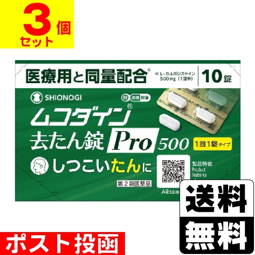 【第2類医薬品】【セ税】■ポスト投函■[シオノギヘルスケア]ムコダイン去たん錠Pro500 (10錠入)【3個セット】