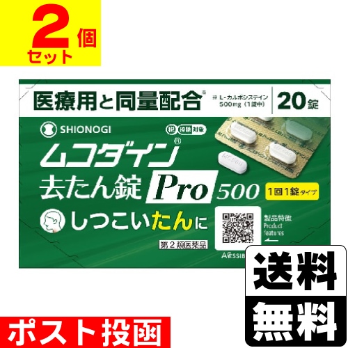 【第2類医薬品】【セ税】■ポスト投函■[シオノギヘルスケア]ムコダイン去たん錠Pro500 (20錠入)【2個セット】