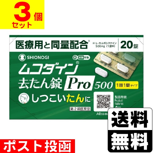 【第2類医薬品】【セ税】■ポスト投函■[シオノギヘルスケア]ムコダイン去たん錠Pro500 (20錠入)【3個セット】