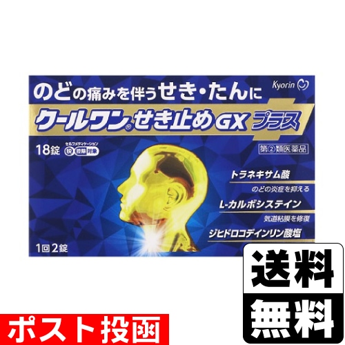 【第(2)類医薬品】【セ税】■ポスト投函■[杏林製薬]クールワン せき止めGXプラス 18錠【おひとり様1個まで】