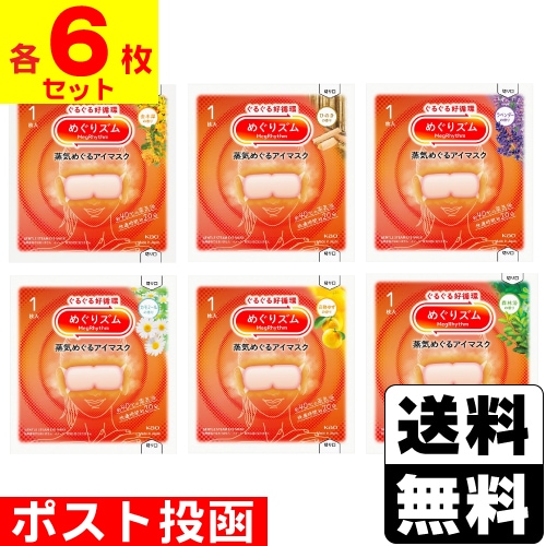 ■ポスト投函■[花王]めぐりズム 蒸気めぐるアイマスク アソートセット【金木犀(キンモクセイ)・ひのき・ラベンダー・カモミール・完熟ゆず・森林浴】6種類×6枚(合計36枚セット)