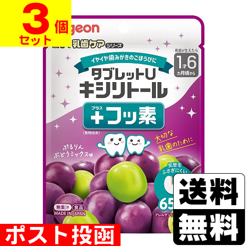 ■ポスト投函■[ピジョン]タブレットU キシリトール+フッ素 ぶどうミックス味 65粒入【3個セット】
