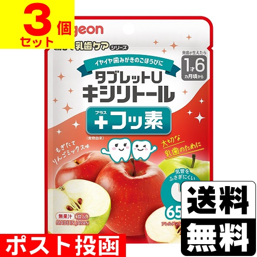 ■ポスト投函■[ピジョン]タブレットU キシリトール+フッ素 りんごミックス味 65粒入【3個セット】