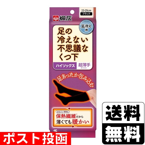 ■ポスト投函■[小林製薬]桐灰 足の冷えない不思議なくつ下 ハイソックス 超薄手 ブラック 23-25cm 1足