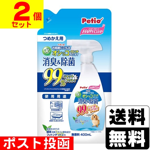 ■ポスト投函■[ペティオ]ハッピークリーン 犬オシッコ・ウンチのニオイ 消臭&除菌 詰替え 400ml【2個セット】