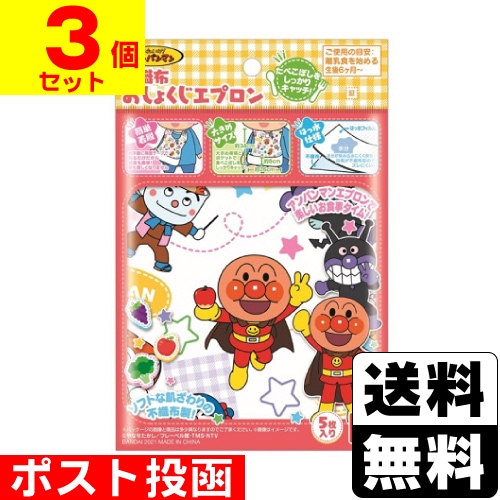 ■ポスト投函■[バンダイ]アンパンマン 不織布おしょくじエプロン 5枚入【3個セット】