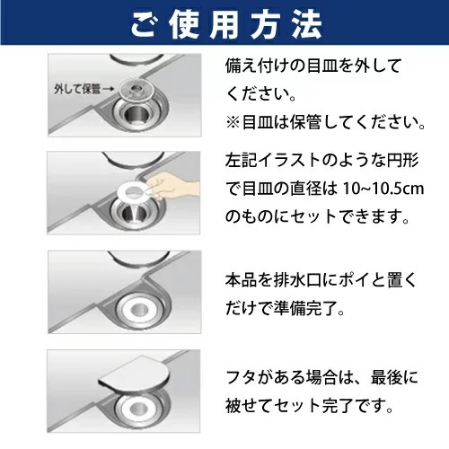 ●排水口にポイっと置くだけ、簡単セットで、排水の詰まりを防ぎます。