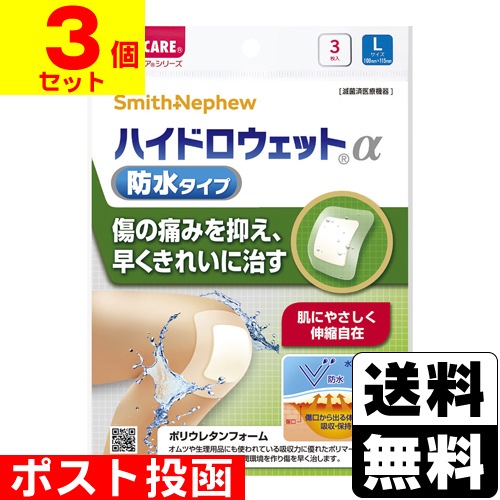 ■ポスト投函■[森下仁丹]メディケア ハイドロウェットα 防水タイプ Lサイズ 3枚入【3個セット】